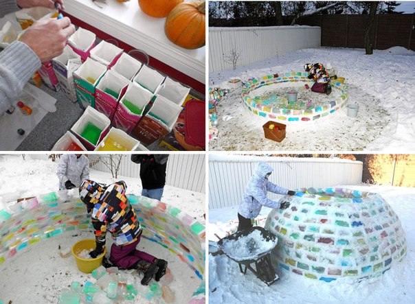 Ребята будут строить из цветного льда. С собой необходимо привезти заранее замороженный цветной раствор.