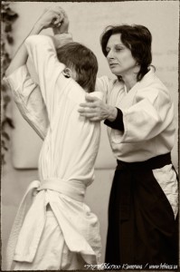 Примеров того, как айкидо помогает – множество. Но мы считаем, что лучшие примеры – когда до «мордобоя» дело не дошло. Идеально – когда айкидока, с точки зрения окружающих людей, ничего, вроде, не сделал, а ситуация рассосалась, как бы, сама. Таких моментов в жизни бывает много. Второй пласт «помощи» айкидо, конечно, в собственно внутреннем росте. В результате занятий у воспитанников увеличивается усидчивость, концентрация внимания, сила воли, которые каждый, по своему выбору, направляет на те или иные виды деятельности. Кто-то увеличил свои возможности в живописи, кто-то – в школьных предметах, а кому-то стало проще брать горные вершины – каждый выбрал по себе. Третий пласт – здоровье. Тут, я думаю, доказывать неоспоримость его увеличения с занятиями айкидо не нужно. Здоровый образ жизни – норма для айкидоиста. Тут не встретишь пьющих, курящих, много смотрящих телевизор или прозябающих в депрессии. И каждый вступающий в это сообщество постепенно и сам переходит на рельсы понимания нужд собственного тела и сознания. Если же говорить о тех примерах, где столкновение всё-таки случалось и действовать приходилось, то навскидку вспомнились такие моменты… Девочка-старшеклассница занималась у нас без особой нагрузки несколько лет. Девочка сильно отличалась от ровесников и в обычной школе её недолюбливали. К концу школы нелюбовь вылилась в неприятную стычку на верхней площадке лестницы, откуда её попытались сбросить двое одноклассников. Девушка, конечно, не была очень хорошо подготовлена для боя, но уход от атаки выполнила автоматически, не успев задуматься о происходящем. Будь девушка на уровень выше, то вряд ли парни покалечились на лестнице – успела бы задержать их падение, с них этого «объяснения» хватило бы. Но эта ситуация лишний раз доказала, что зло возвращается к тем, кто его сотворил. На моего супруга, занимающегося айкидо уже в то время около восьми лет, в подворотне сзади внезапно напал грабитель. Попытался «взять на нож». Супруг интуитивно почувствовал приближение опасности, развернулся и сходу захватил запястья рук нападавшего. Хотя по габаритам они были схожи, и наличие оружие давало превосходство противнику, но сделать тот ничего не мог. У айкидоистов за годы тренировок вырабатывается профессиональный мягкий хват, способный без нанесения увечий удерживать вырывающиеся руки так, что действовать становится весьма затруднительно. Противнику пришлось отступить – боя, как такового, так и не было. Весьма одарённый ребёнок шести лет занимался у меня в группе. К его отцу приехал старый друг в гости и мужчины, как это бывает, выпили и затеяли разговор о достижениях сыновей. Папа моего ученика похвалился, что тот занимается айкидо. Как было не позвать сына и не попросить его что-нибудь показать?! Папа так и сделал. Сын оробел, видя перед собой здорового дядьку, который с улыбкой схватил его за руку. Но именно этот страх и сыграл злую шутку – мальчик сделал самый простой, но хорошо выученный приём. И дядька охнув, обрушился на колени. Увы, они были не в спортивном зале, а на обычной кухне, где всё заставлено мебелью. В результате дядя ударился лицом об стол, а упал на свалившийся табурет. Синяков оказалось достаточно, чтобы больше не затевать домашних проверок. Чему ребёнок, несомненно, был очень рад.