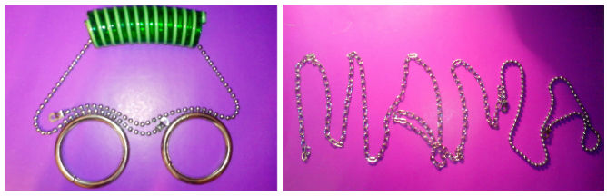 - "На что похоже?" Бросить цепочку на поверхность стола или пола и посмотреть. (Вариант с застегнутой цепочкой: посчитать получившееся количество замкнутых фигур).