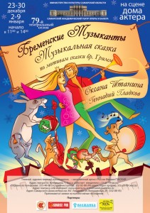 Своеобразным продолжением темы стала и музыкальная сказка «Бременские музыканты» в постановке нашего театра. Как и в сказке, как в любимом мультфильме, в нашем спектакле действует бравая четверка друзей – Кот, Петух, Пес и Осел. И охрана, которая встает «ох, рано»… И другие персонажи знаменитой сказки. И, конечно, в «Бременских музыкантах» дети услышат любимые мелодии Геннадия Гладкова. Они прозвучат в аранжировке самарского композитора Василия Тонковидова.