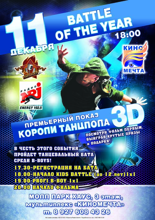 Мультиплекс "Киномечта" и радиостанция "Energy" представляют премьеру фильма "Короли танцпола 3D" на день раньше официального старта.