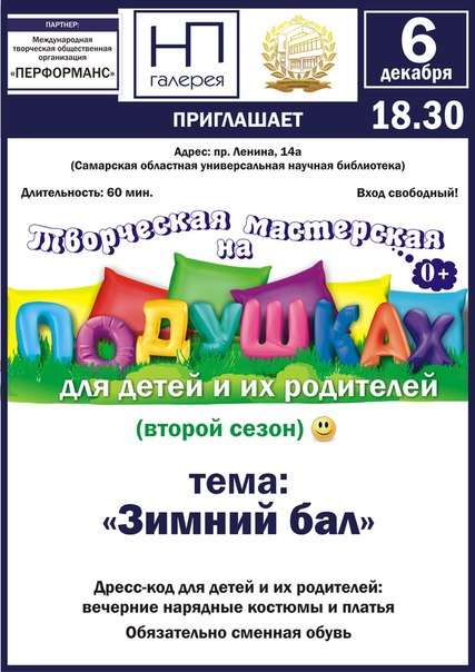 Приглашаем детей и их родителей на "Зимний бал", который начнется 6 декабря в 18.30. Вас ждет предновогодняя суета, хорошее настроение, много музыки и танцев