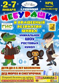 2-4 января 11.00, 14.00, 17.00; 5-7 января 11.00, 14.00 ЧЕБУРАШКА и волшебный резонатор Юника