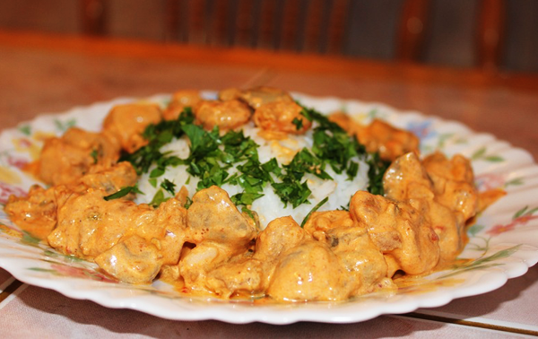 Не так часто мы наблюдаем случаи, когда папы в пространстве кухни чувствуют себя уверенно. Они, папы, конечно, бывают разные - кто-то робко приподнимает крышку кастрюльки и пытается угадать чечевица в ней или что-либо еще - вкусное, но совсем незнакомое. А некоторые на кухне так смелы и умелы - тут уже мамы не решаются играть роль шеф-повара. Хотим предложить папам (опытным кулинарам и не очень) провести маленький эксперимент - попробовать удивить маму праздничным ужином, приготовленным самостоятельно или с маленькими помощниками.   Итак, приготовим с детьми несложное, но красивое и праздничное блюдо. Ингредиенты: Куриное филе 500 г Коктейльные креветки 200 г Сливки 20 % 200 г Майонез 2-3 ст. л. Сыр твердых сортов (Голландский) 100 г Соль и специи по вкусу Растительное масло (для смазывания формы) 2 ст. л. Приготовление: 1. Куриное филе нарезать небольшими кусочками (примерно 3х5см), добавить соль и специи. Выложить в форму для запекания, смазанную маслом. Лучше использовать стеклянную форму, если таковая имеется, в ней блюдо будет выглядеть более празднично при подаче к столу. 2. Поверх куриного филе выложить коктейльные креветки и сбрызнуть их слегка лимоном. 3. Сливки 20% смешать с майонезом и мелко натертым сыром, далее полить курицу с креветками этой смесью и поставить в духовку. Запекать 30-40 минут при 180 градусах, до появления румяной корочки. Если вы запекали блюдо в стеклянной форме, так и подайте его к праздничному ужину, а в качестве гарнира выберите то, что больше всего нравится вам и вашим детям: макароны, тушеные овощи или картофель. Приятного аппетита!