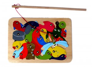 Очень доволен покупкой деревянных пазлов для своих внуков – выбрал каждому по картинке. Помимо этого подарили им пазлы с магнитными удочками – дети на скорость «ловят» и яблочки, и рыбок, и бабочек, и что самое интересное – их трудно расставить по местам, нужно подумать хорошо. Интересный и весёлый подход.