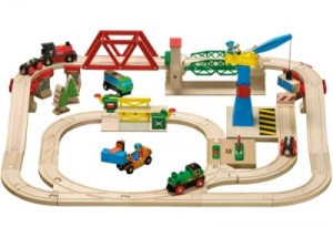 Долго искали интересный подарок внуку на 3х-летие. Решили остановить свой выбор на деревянной железной дороге. Купили сразу и готовый набор, и дополнительные рельсы, кран, развилки и т.д. У ребёнка перехватило дыхание, когда он всё это увидел! До сих пор играет практически каждый день. Строит всё новые и новые варианты дороги, обыгрывая различные игровые ситуации – от погрузки груза в вагоны до перевозки пассажиров.