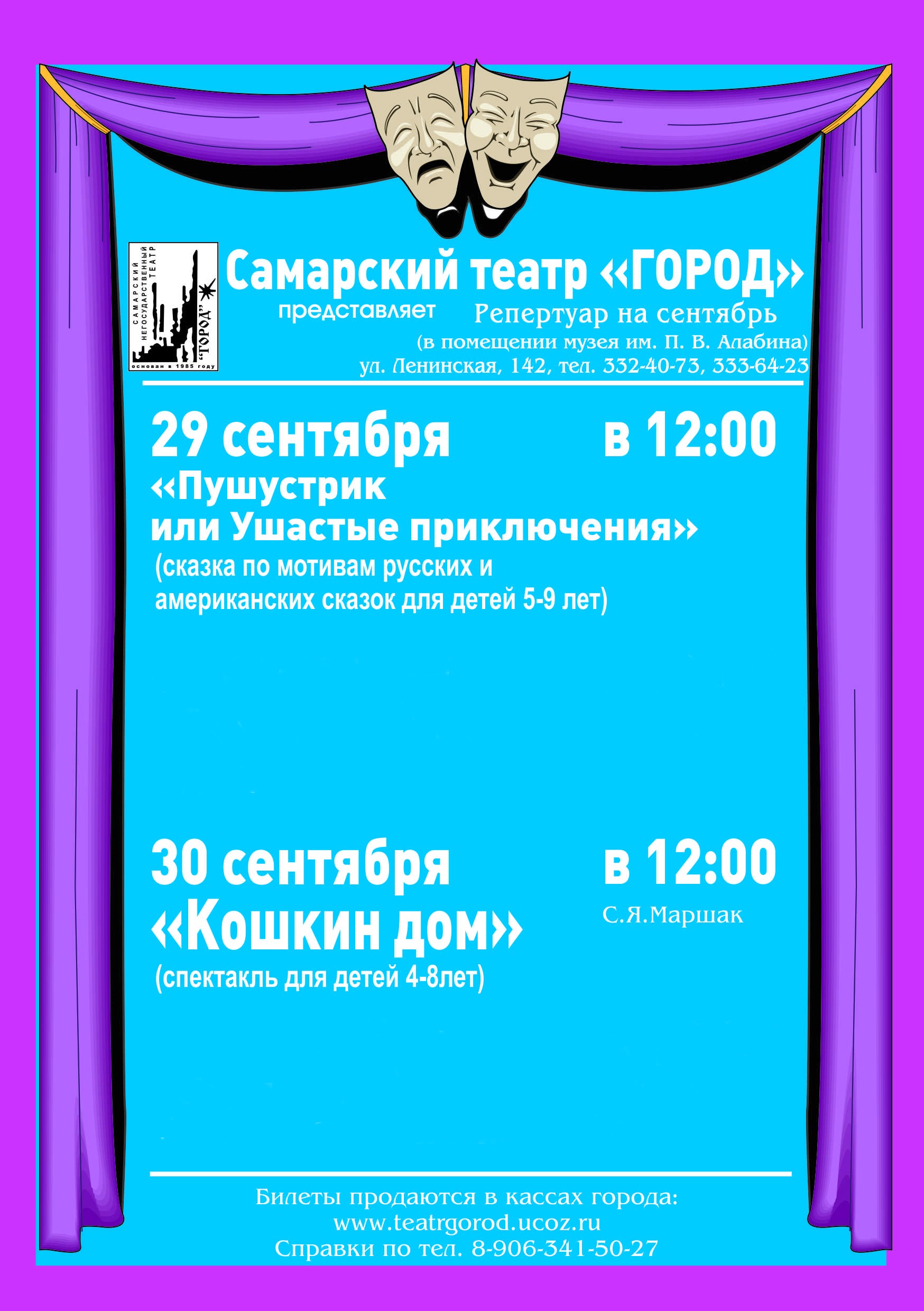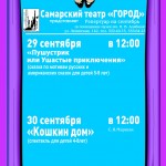 Театральный сезон уже начался. Представляем читателям сентябрьскую афишу. Спектакли для детей разных возрастов, от 3 лет,  и, конечно, для их родителей, бабушек и дедушек. "Дети воспринимают театр не так, как взрослые; театр для них (лет до двенадцати) - это естественное продолжение их жизни, в которой игра занимает достаточно большое место. Дети не отделяют себя от театра в той степени, как это делают люди постарше. Для них артисты - те немногие взрослые, с которыми можно играть", - сказал Борис Покровский, народный артист СССР. Многие театральные режиссеры думают также. Наверное, поэтому большинство детских спектаклей проходят в интерактивном формате, специально для маленьких театралов.