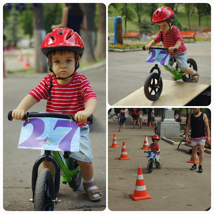 Беговел стал настоящей страстью Макара! Он проводит на нем по несколько часов в день и мечтает стать гонщиком, когда вырастет. С новым увлечением сына и вся наша семья приобщилась к спорту: мама с папой теперь очень много (и быстро!) бегают за маленьким беговелистом. На фото - первая гонка. Макар участвовал в семейной эстафете в команде вместе с папой, а мама выступала в роли фоторепортера.