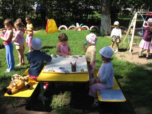 Детский сад расположен в экологически благоприятном районе. Прекрасная территория, много зеленых насаждений.