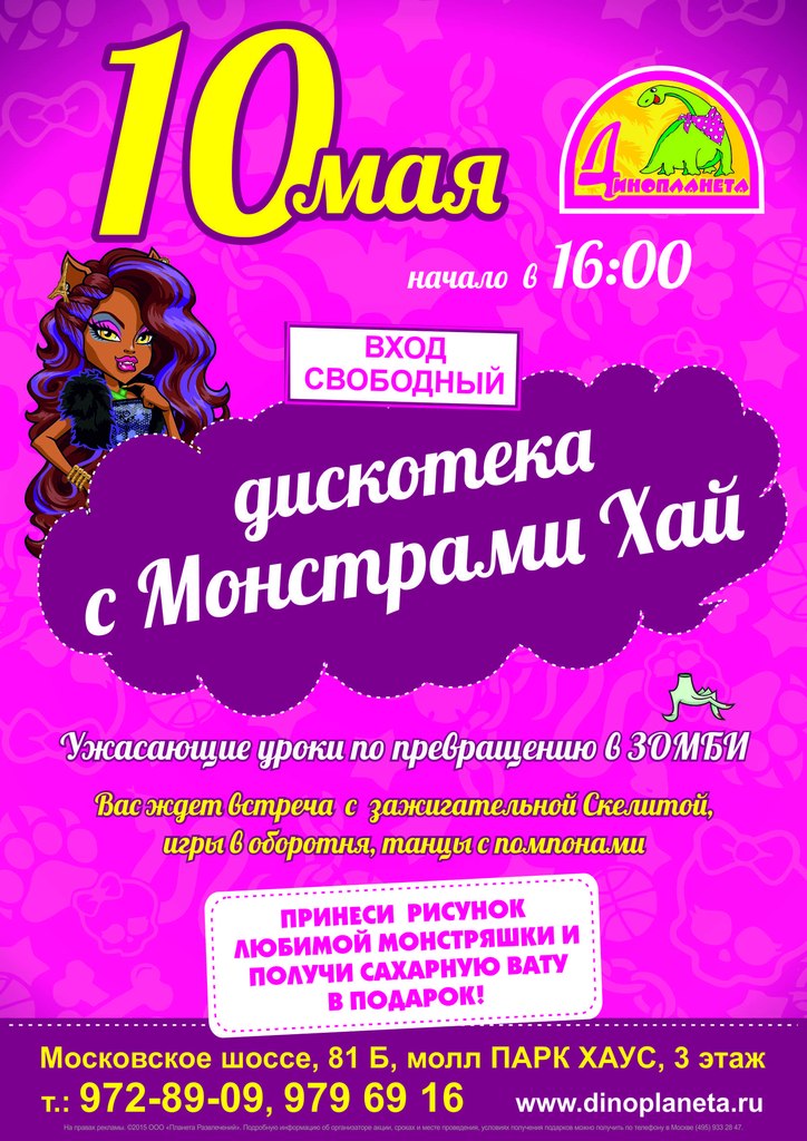 Детский развлекательный комплекс «Динопланета» приглашает на дискотеку с Монстрами Хай детей всех возрастов.