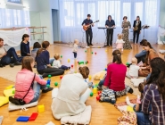 В зале нет стульев, а только подушки и ковры, создано игровое пространство. Малыши могут бегать и играть. Всю вторую половину концерта малыши смогут играть на различных инструментах вместе с музыкантами. Бесплатная фотосъемка после концерта с музыкантами и инструментами.