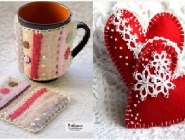 Своими руками вы сделаете вязанные и текстильные «валентинки» и яблочки, валяные чехлы для кружек в подарок родным и друзьям.