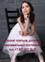 Студия проката «Венера» предлагает детские нарядные платья, карнавальные костюмы напрокат.