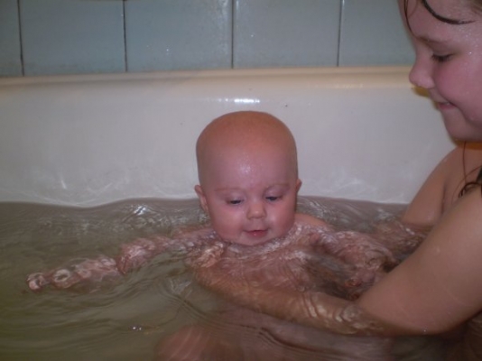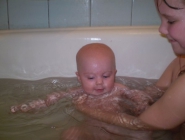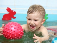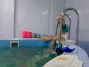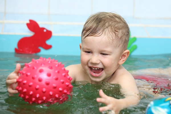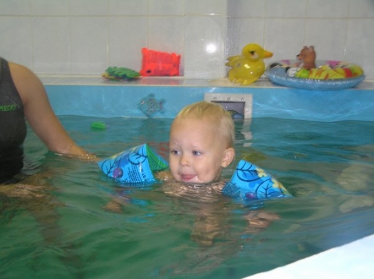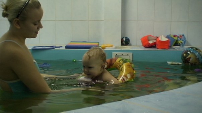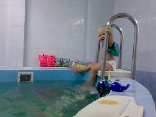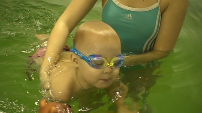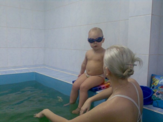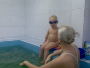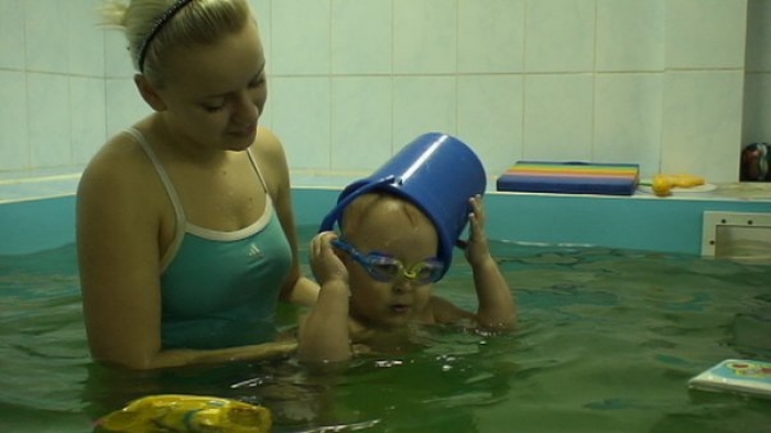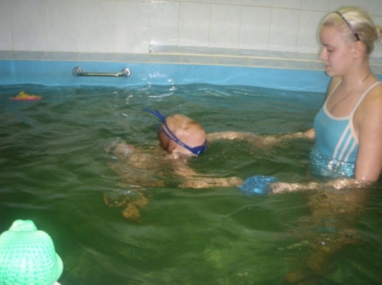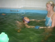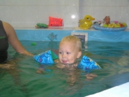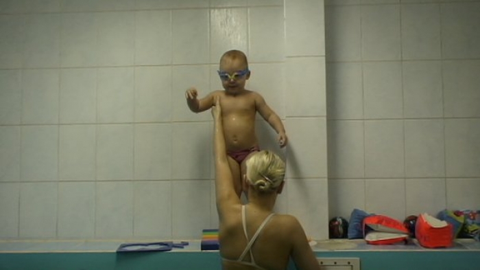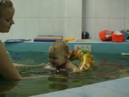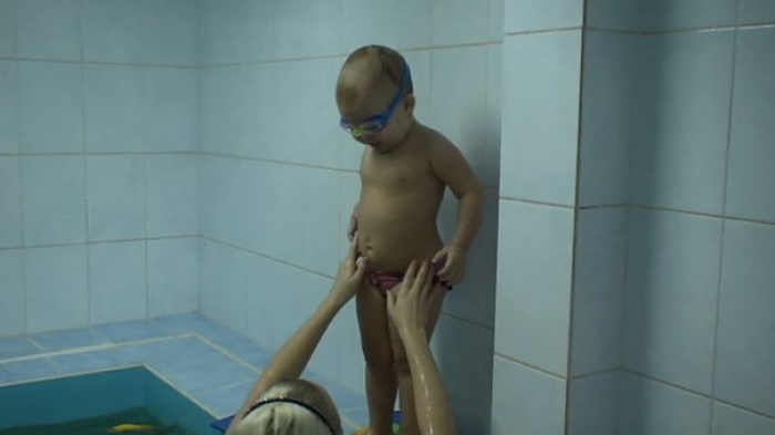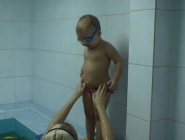 Описание: Ребенка обучают держаться на воде, нырять, плавать.