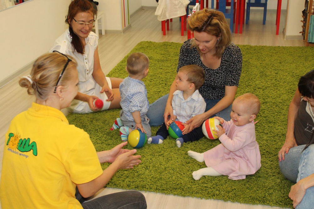 Каждый ребенок занимается вместе с мамой или другим взрослым человеком (папой, няней, бабушкой).