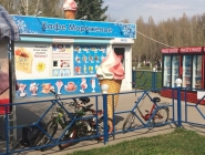 В кафе большой выбор мороженого на любой вкус (11 видов), разнообразные поливки (7 видов) и посыпки (10 видов). Также большой ассортимент прохладительных напитков, молочных коктейлей, а еще в продаже есть сэндвичи.