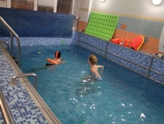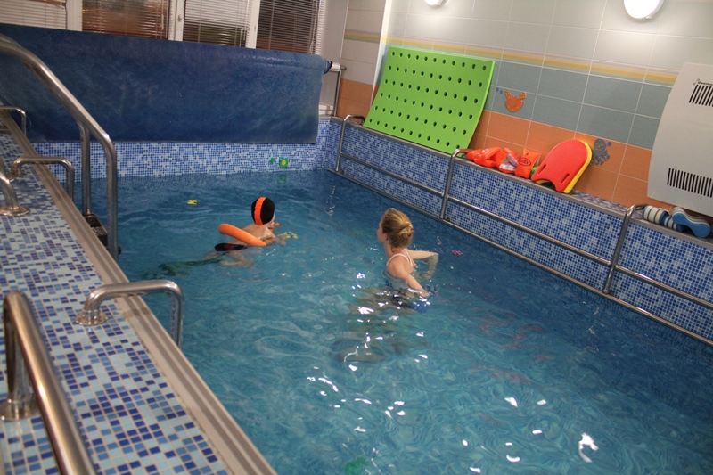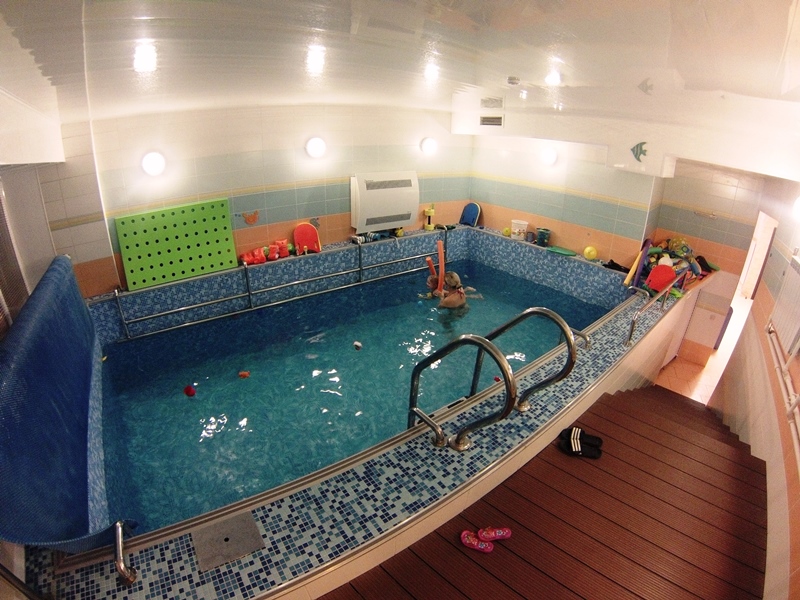Здесь есть: уютный бассейн размером 3х6м, с комфортной температурой воды 31-32°, сухая сауна с температурой 50-65°, профессиональные тренеры, детский массаж.